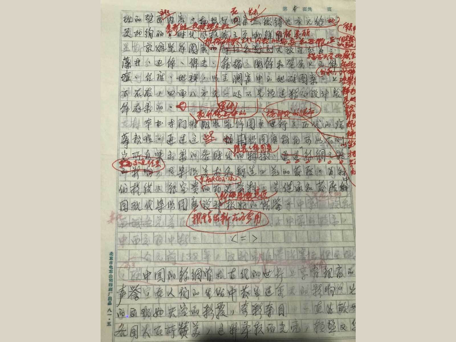 翻开《中国敦煌历代服饰图案》的手稿,随处可见常书鸿用红笔留下的圈圈点点。常沙娜在扉页上郑重写道:“珍贵的原稿,有着爸爸亲笔修改的笔迹。”